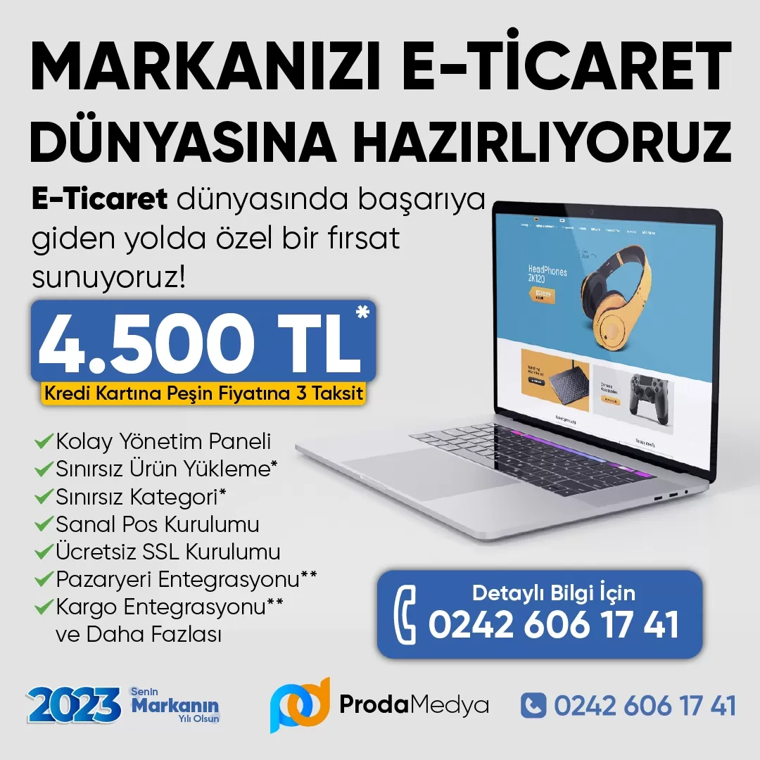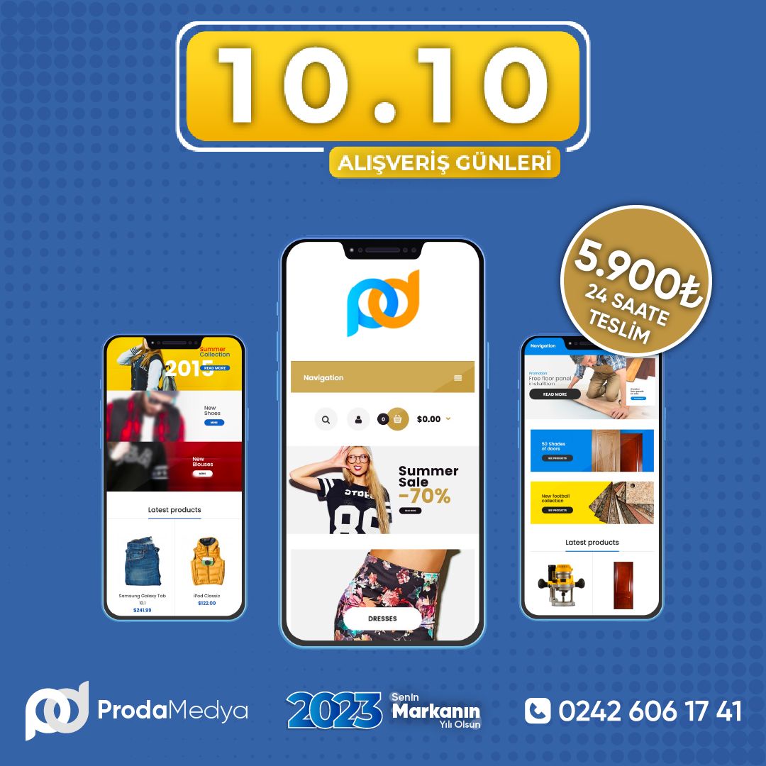 10.10 Alışveriş Günlerine Özel Teklif: E-Ticaret Sitenizi 24 Saatte Teslim Ediyoruz! E-ticaret dünyasında yer almak artık çok daha kolay ve erişilebilir! Proda Medya olarak, işletmelerin dijital dünyaya adım atmalarına yardımcı oluyoruz. E-ticaret siteniz yok...